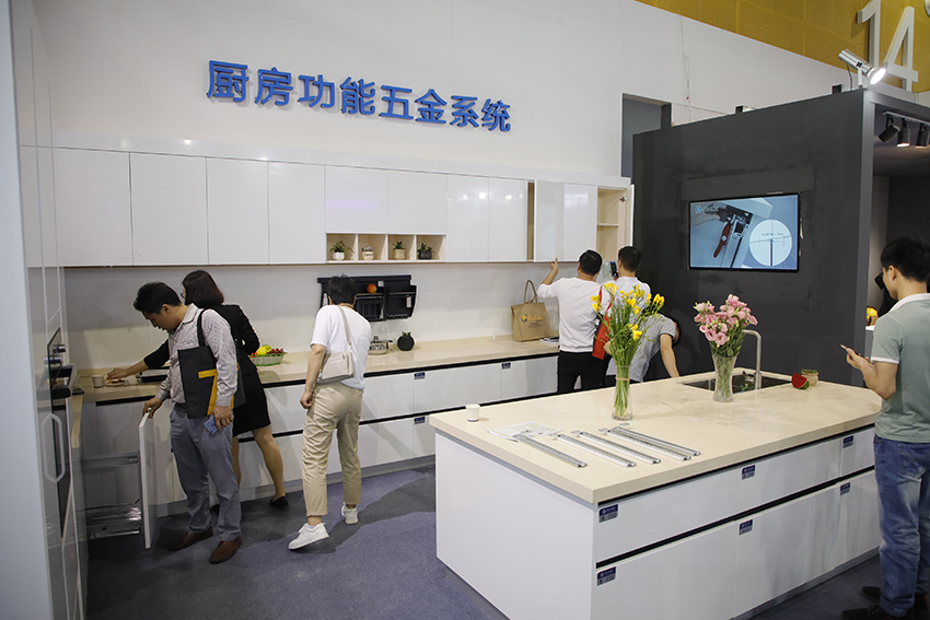 在廚房功能五金區(qū),地柜系列、高柜系列、吊柜系列,各式拉籃水槽……廚房生活,一應(yīng)俱全。此次展會(huì)我們的工作人員在現(xiàn)場(chǎng)精心烤制甜點(diǎn),讓廚房生活充滿香甜氣味。